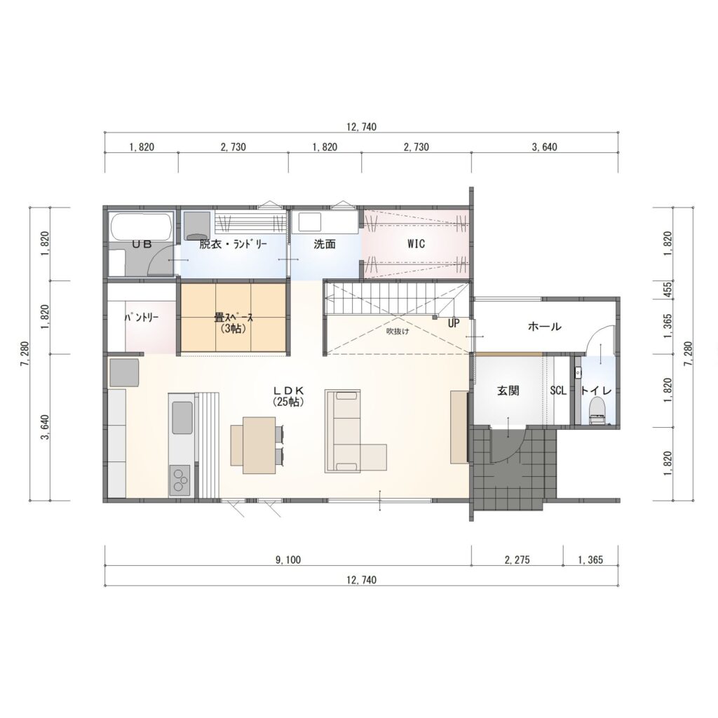 | 面積 | 延床面積 /137.46㎡(41.58坪) 1階床面積 /77.84㎡(23.55坪) 2階床面積 /59.62㎡(18.04坪) | ||||