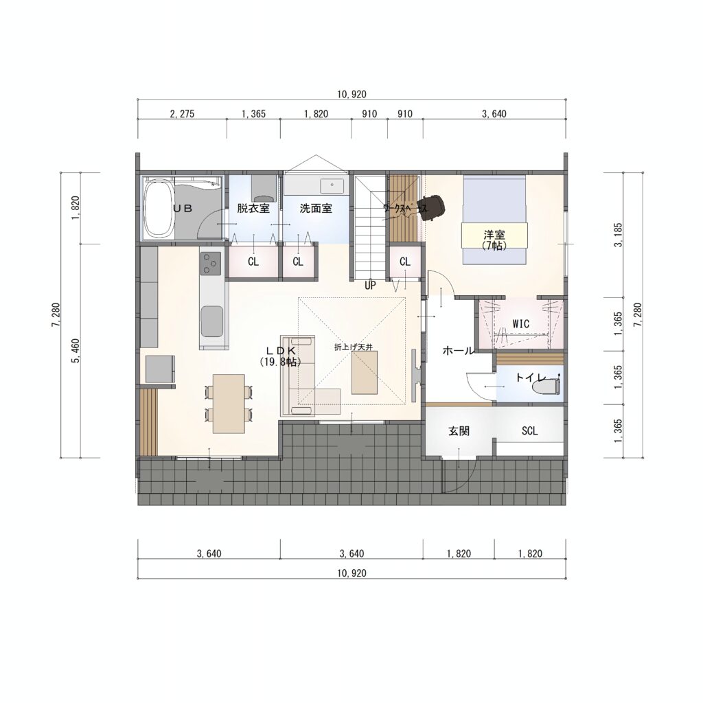 | 面積 | 延床面積 /105.18㎡(31.82坪) 1階床面積 /76.19㎡(23.05坪) 2階床面積 /28.99㎡(8.77坪) | ||||